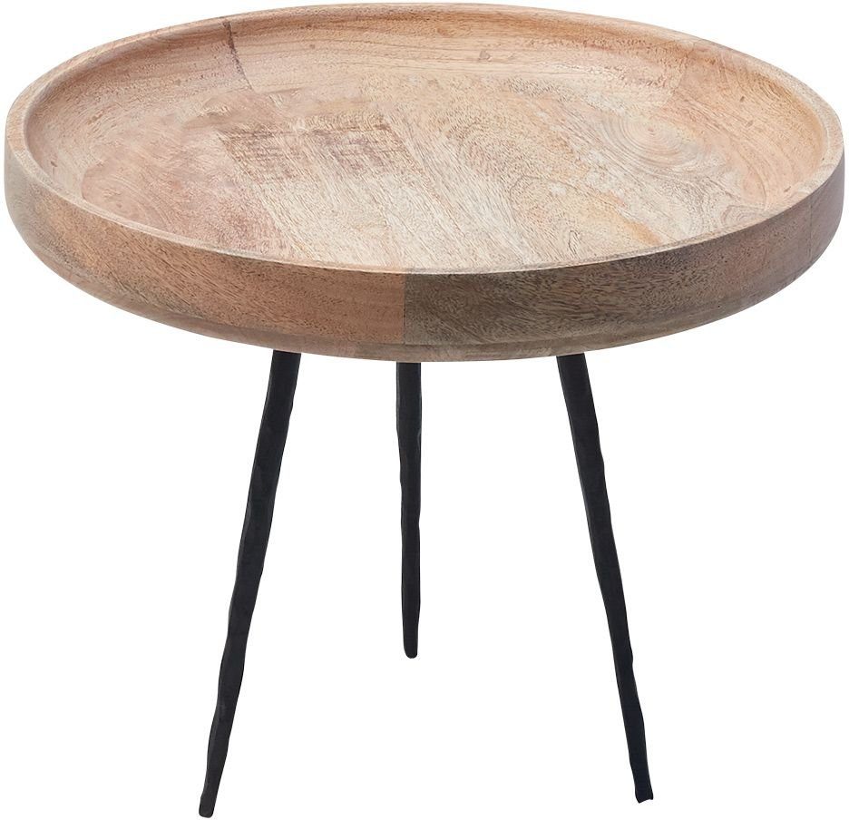 Ett mysigt soffbord med en retro design. Bordsskivan är tillverkad av trä med en härlig naturlig look och underredet är tillverkat av svart metall.