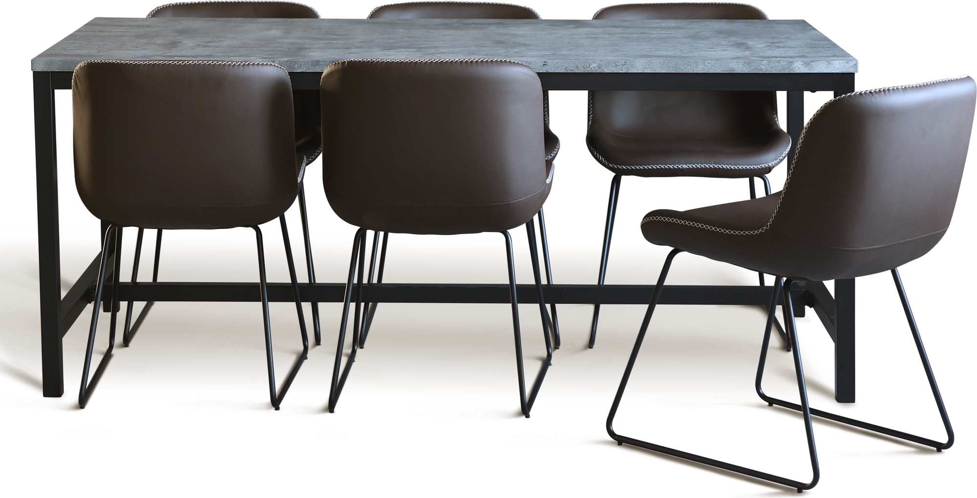 Texas matgrupp med 6 st Texas matstolar Brun PU + Texas matbord betong 180x90 cm