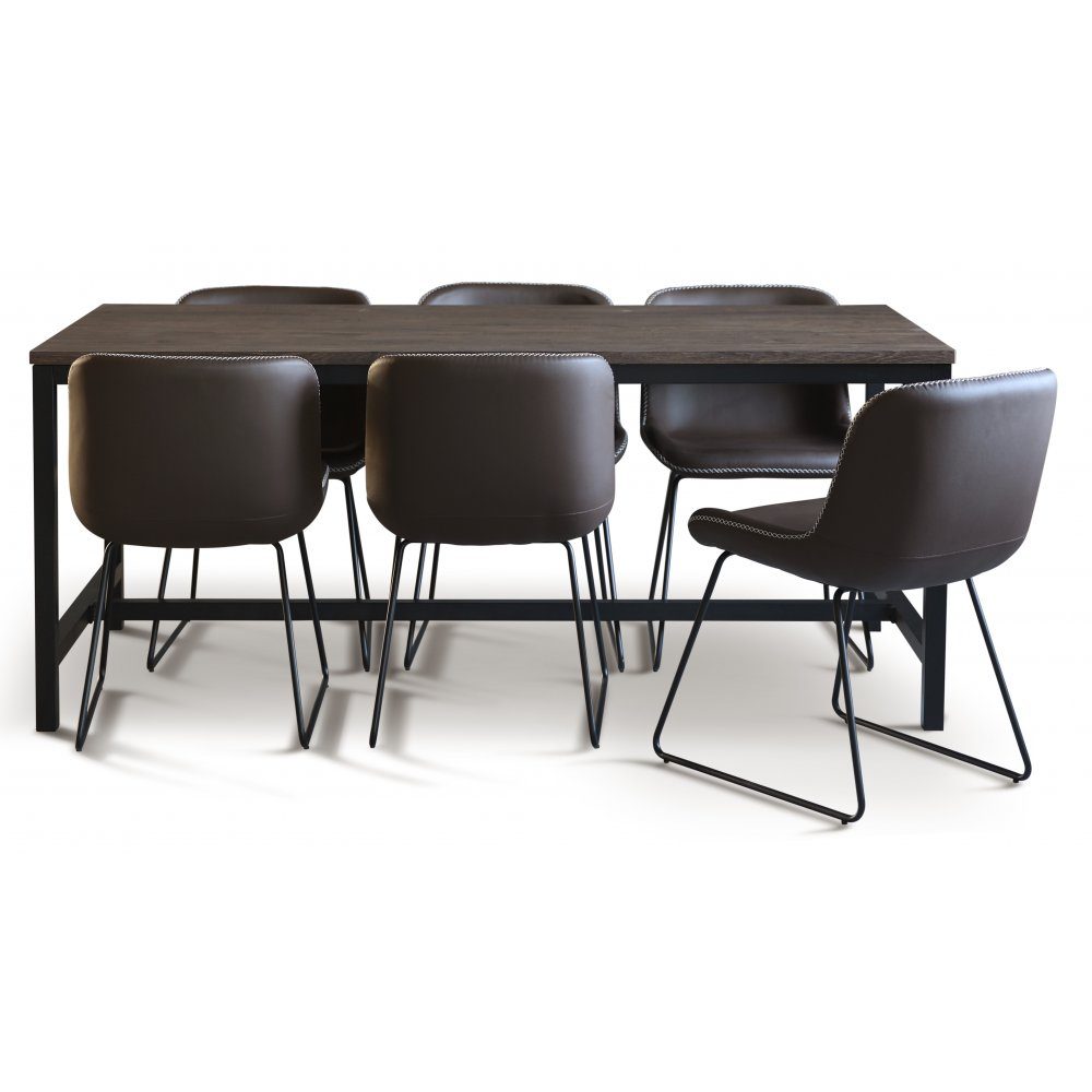 Texas matgrupp med 8 st Texas matstolar Brun PU + Texas matbord mörkbrun 200x100 cm: