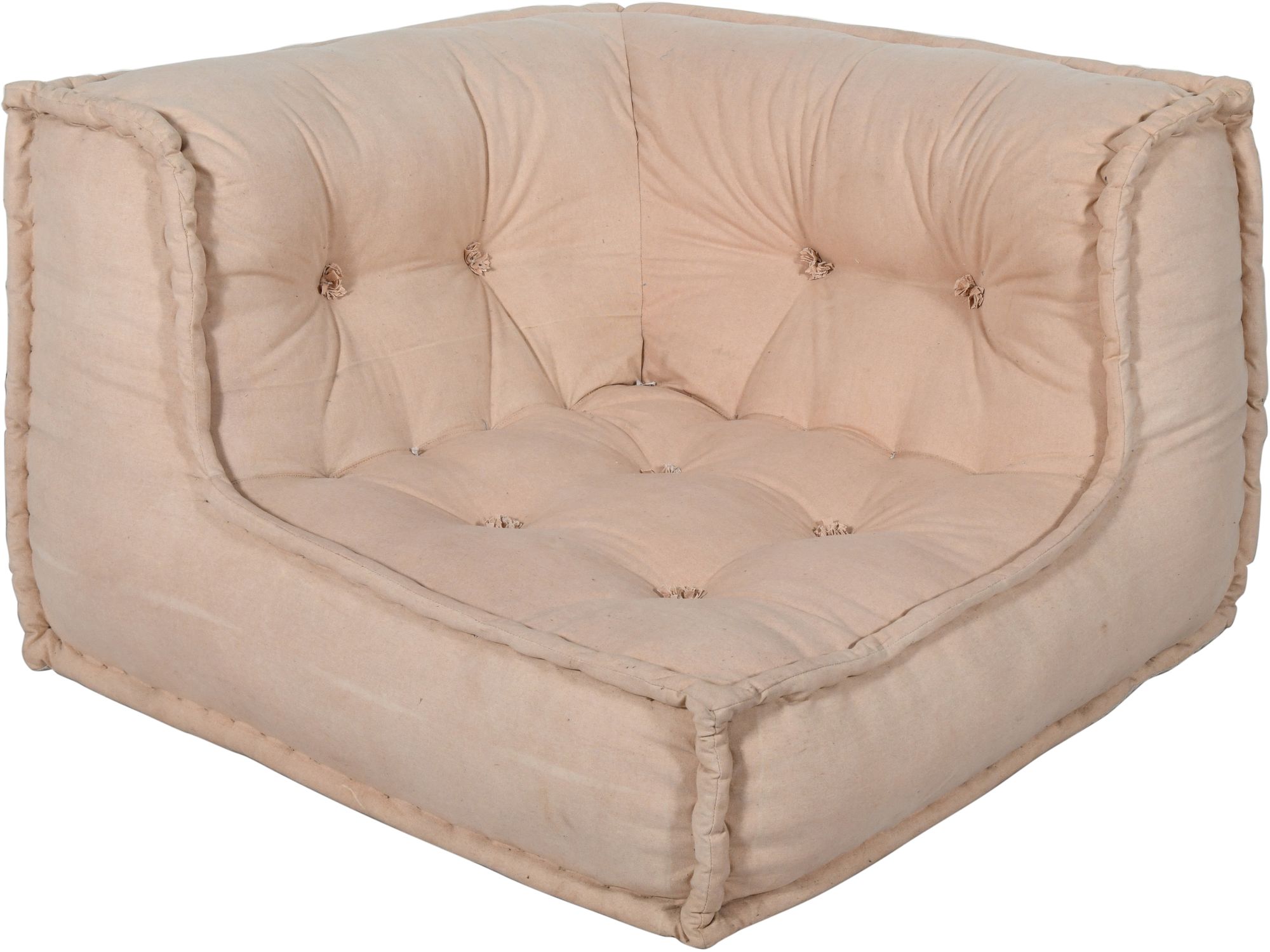Teyard fåtölj med tjock sitt- och ryggdyna av beige bomullscanvas, med knappar. En nätt och stilren fåtölj utan stomme. Perfekt till myshörnan.