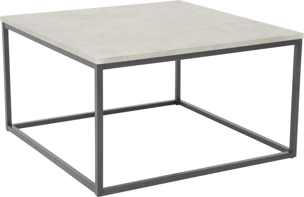 Thorborg soffbord med laminerad toppskiva i MDF, mönster av betong. Underrede i svart metall.