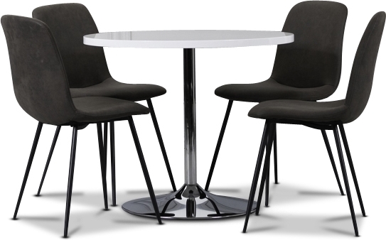 Tiana matgrupp, runt matbord med 4 st Smokey matstolar - Vit/Vintage