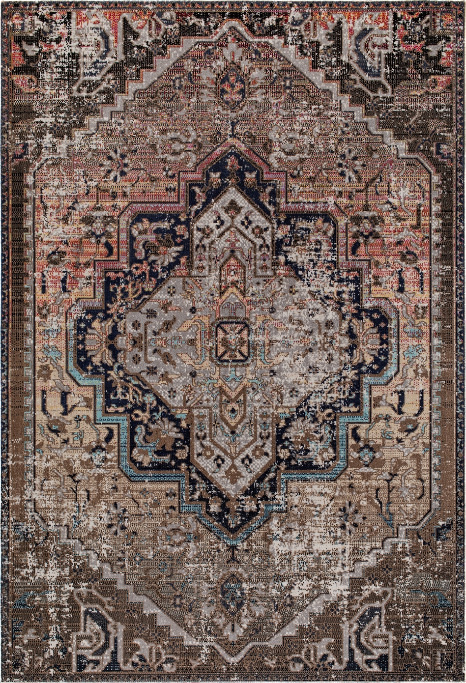 Tibet Aztec Multi har ett aztecinspirerat medaljongmönster med en botten i sand och grått. Mönstret fyller mattan med rosa, turkos, marinblå och cerise och skapar en härlig färgklick där den tar sin plats. Färgerna vävs snyggt tillsammans och skapar en lättare vintagelook. Eftersom mattan är tillverkad i 100% polypropylen och inte innehåller några jutetrådar, tål den väta och passar därför lika bra inomhus som utomhus.