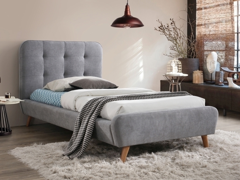 Sängram i trä. Klädd i polyester. Kombinera med en madrass som passar just dig. Madrass köpes separat.