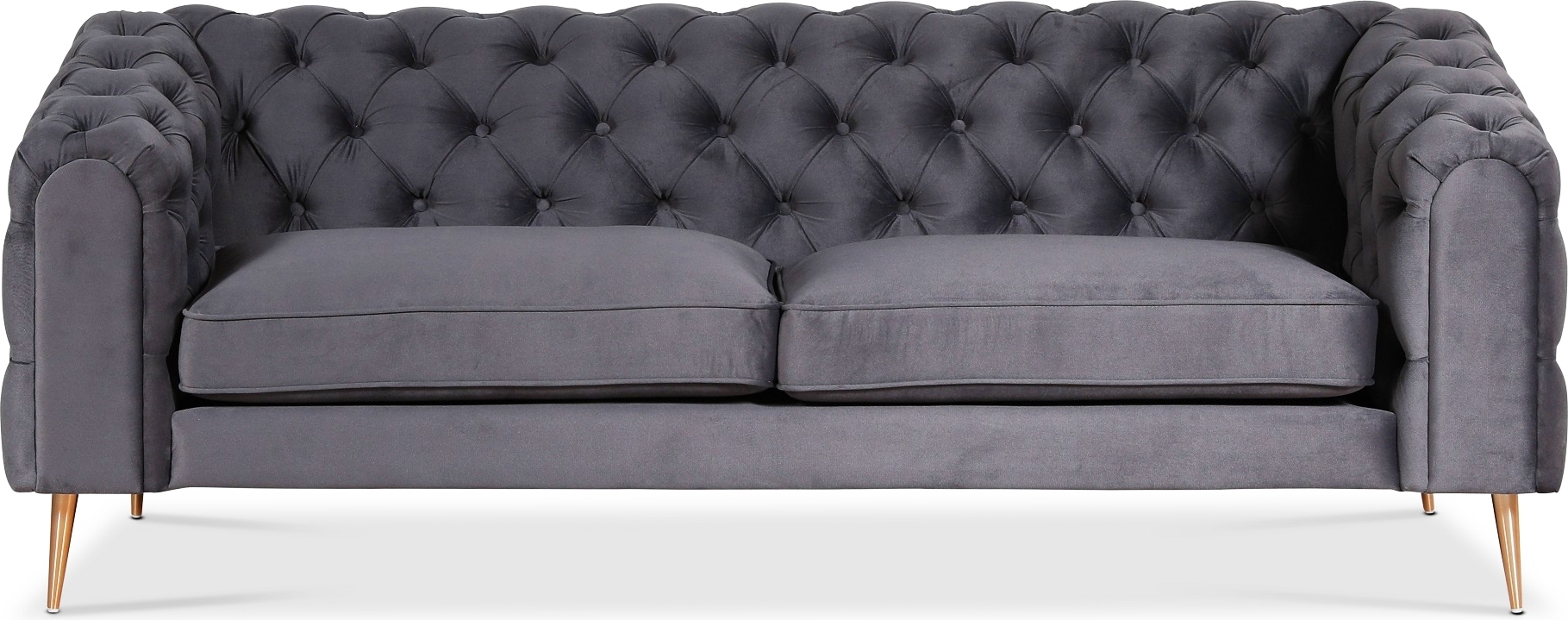 Tiffany är en moderniserad chesterfieldsoffa som passar både i det moderna och det klassiska vardagsrummet. Svarvade metallben i mässing.