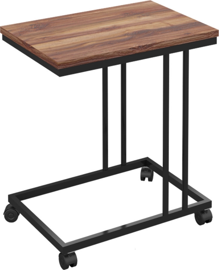 Sidobord av trä och metall.