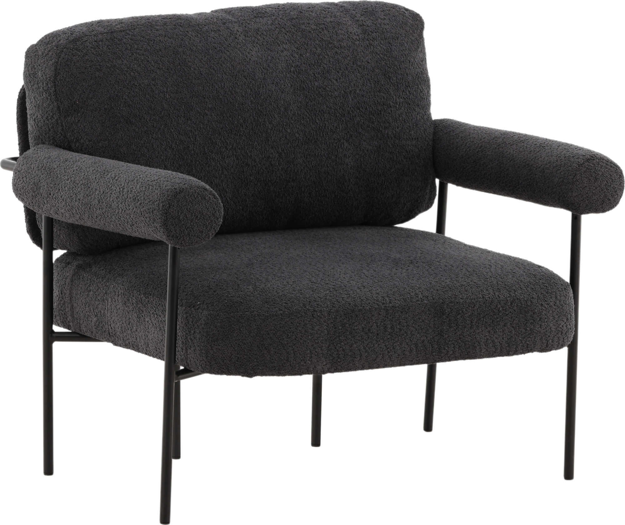 Fåtölj som höjer mysfaktorn i vardagsrummet. Den generösa sitsen tillsammans med det mjuka ryggstödet och rundade armstöden skapar en bekvämlighet utöver det vanliga. Fåtöljen är klädd i ett grått boucletyg och har ben av svart stål. Placera intill soffgruppen eller varför inte ensam som en vacker inredningsdetalj. De nordiska formerna och nostalgiska designen skapar ett härligt blickfång i alla rum och är lätt att matcha med övrig inredning.