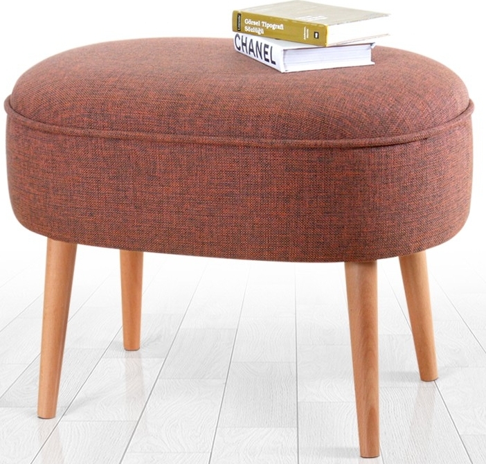 Sittpuff av trä. Klädd med linne. Stoppning av skum.