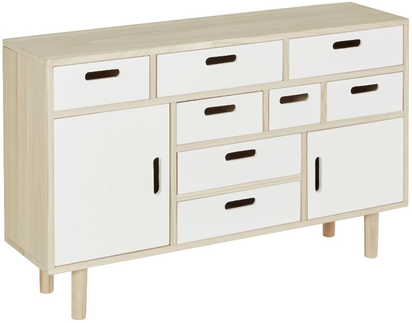 Modern skänk med förvaringsskåp och lådor. Passar in i flera olika rum i hemmet. Ingår i vår Tindra serie.