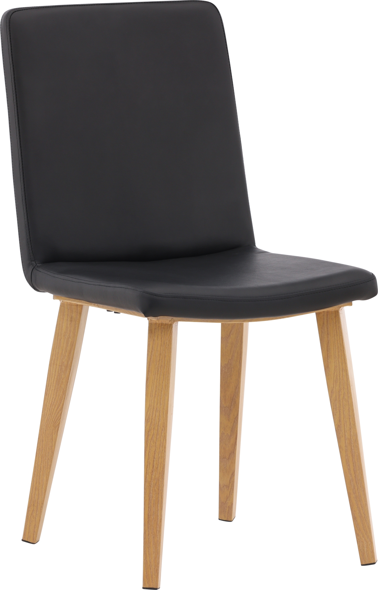 Klassisk matstol med raka nordiska former och en kaxig helklädd sits i svart konstläder. Stolsbenen är lätt utsvängda i naturträ och ger ett stadigt intryck. Den genomtänkta helhetsdesignen är lika modern som tidlös. Matcha med ett snyggt matbord så får du en komplett matgrupp till dina trivsamma måltider framöver!
