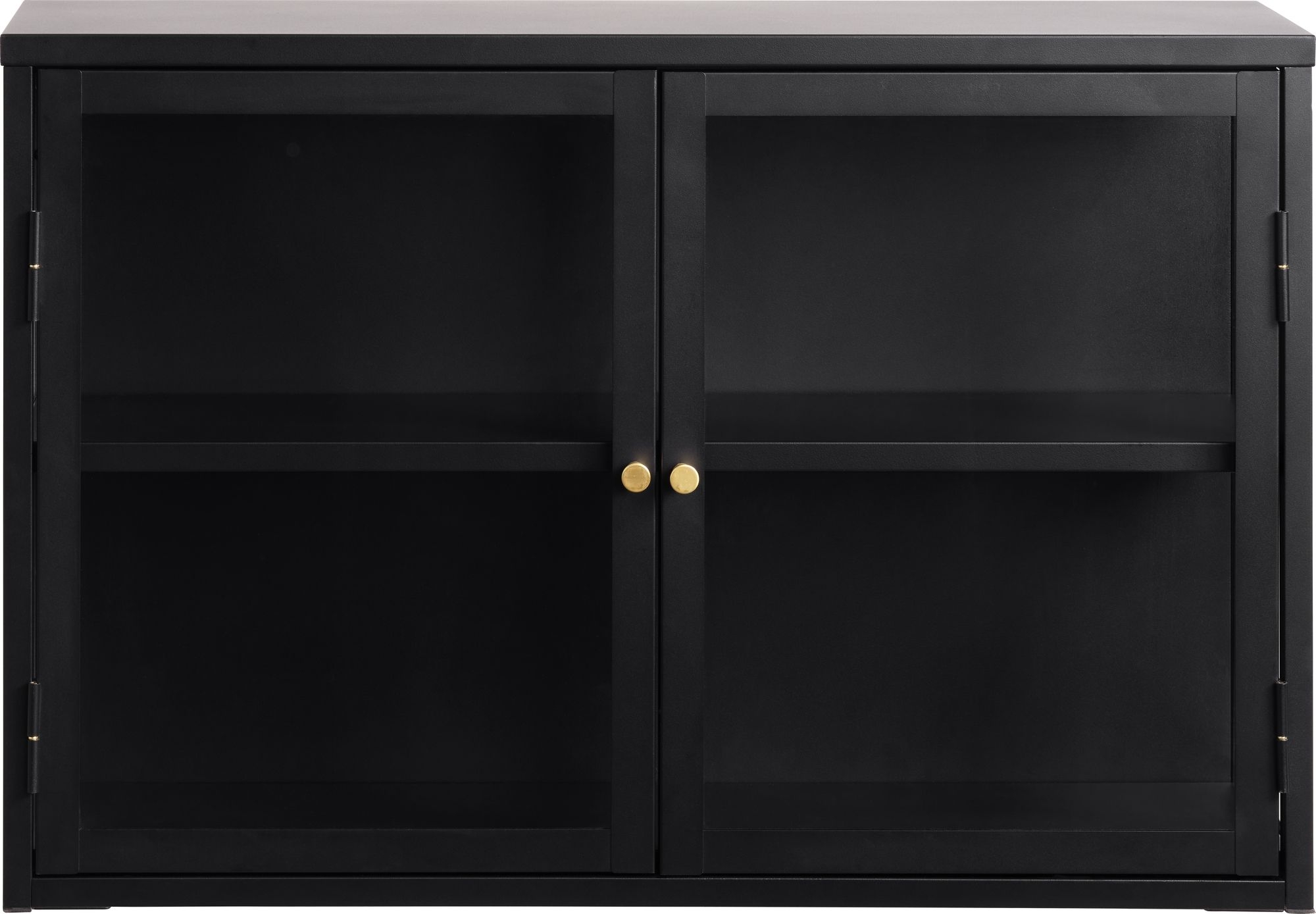 Toddy svart väggskåp med dubbeldörr i klart glas med handtag i mässing.
