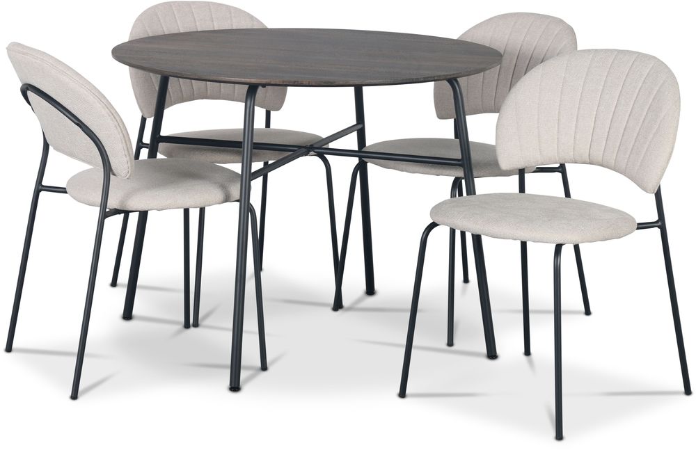 Tofta matgrupp Ø100 cm bord i mörkt trä + 4 st Hogrän beige stolar