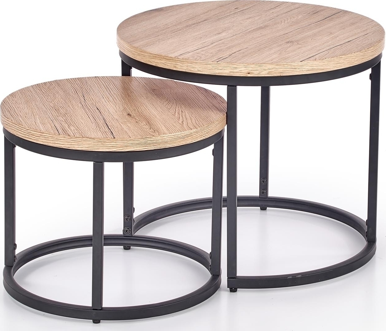 Två snygga satsbord med en modern design. Bordsskivorna är tillverkade i laminerad MFP (premium träskiva) och underredet är av pulverlackerad metall.