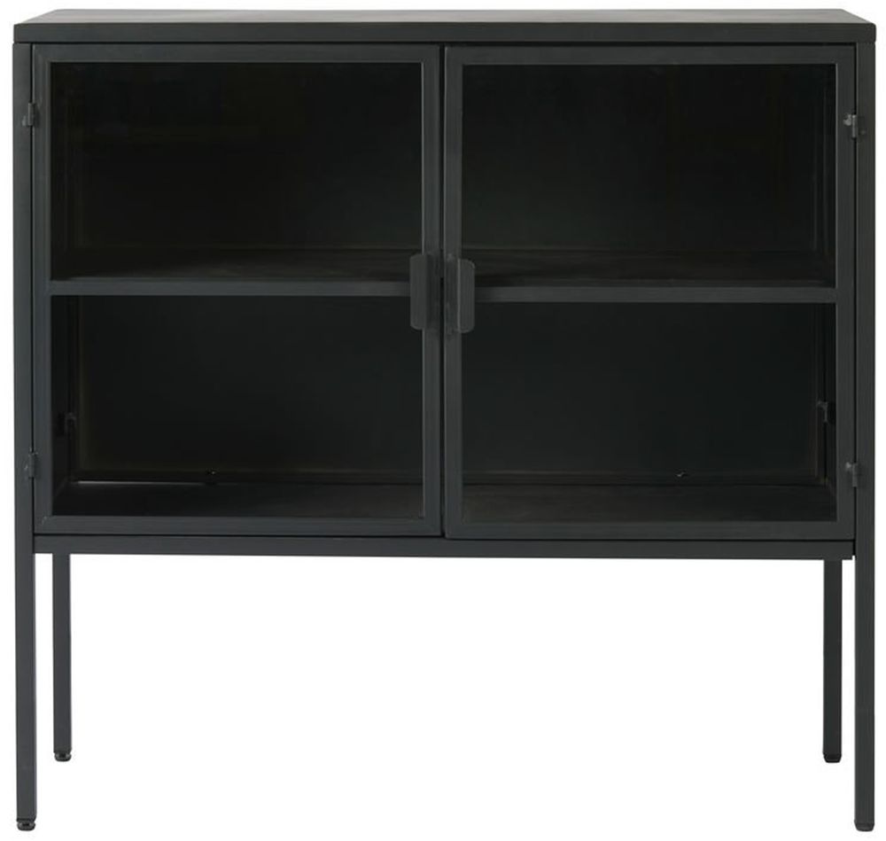 Tore lågt vitrinskåp med 2 glasdörrar, tillverkat av svart metall. Tillför en industriell stil till hemmet.
