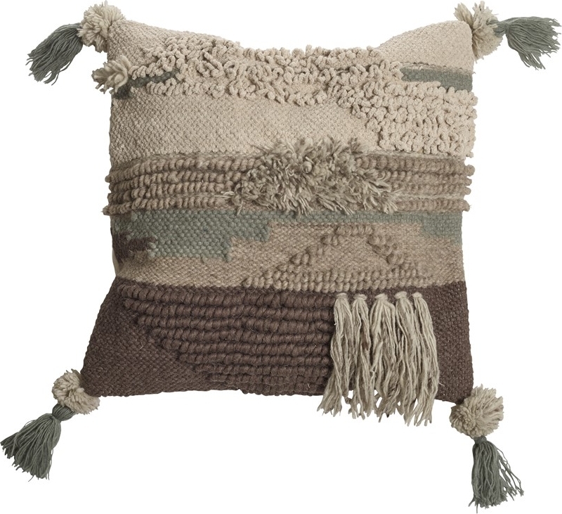 Kuddfodral med vävt mönster på framsidan och tofsar i hörnen. Enfärgad baksida i 100% bomull.