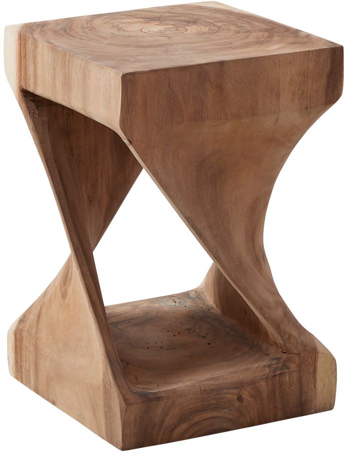 En härlig pall med en retro design. Pallen är helt tillverkat av regnträd och har en vackert naturlig trä look.