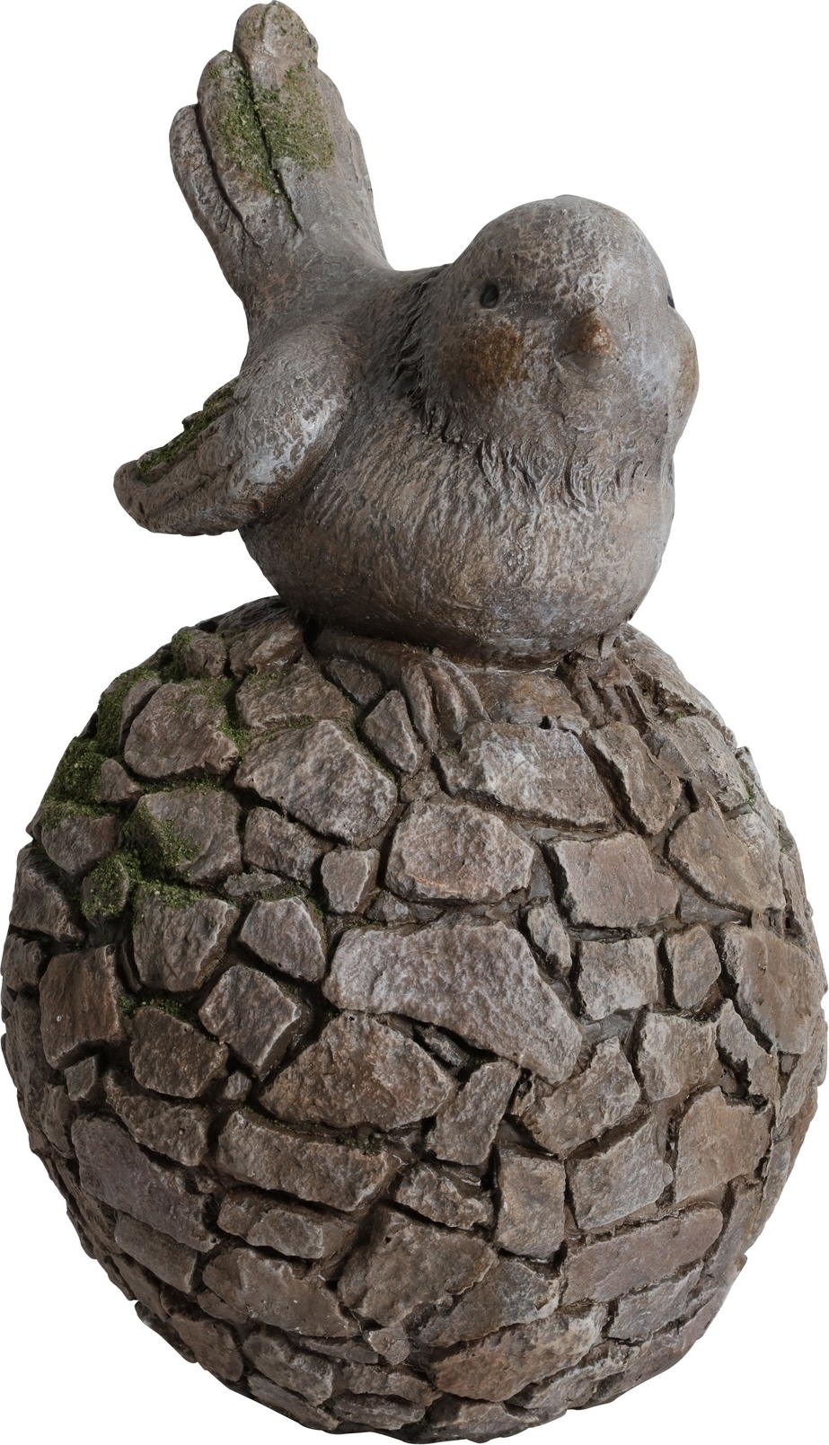 Trädgårdskonst fågel på klot i sten - H44 cm