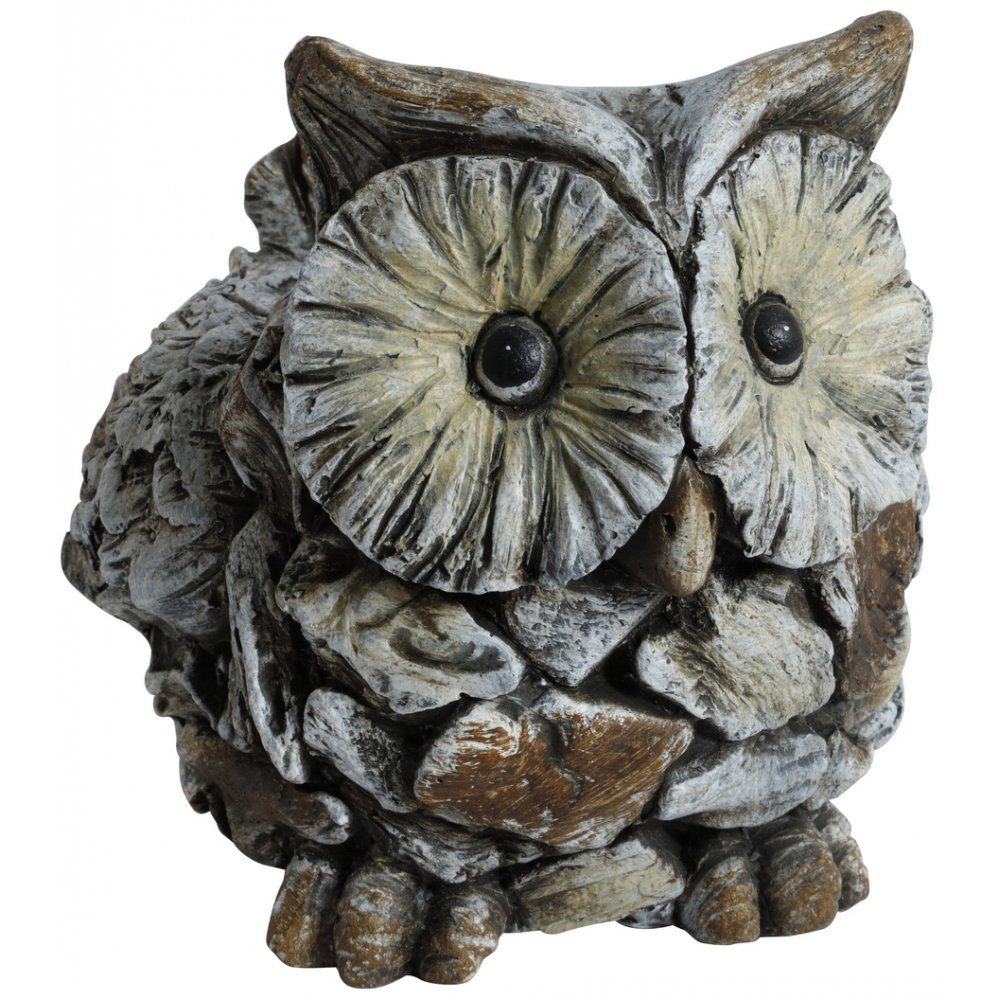 Trädgårdskonst som förgyller närvaron i ens trädgård. Klok uggla i sten.