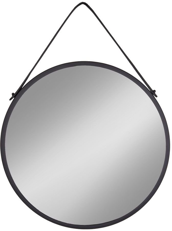 Spegel med svart stålram och PU bälten.