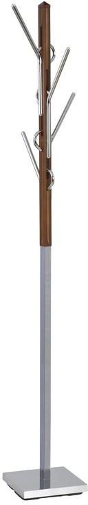 Snygg klädhängare med en modern design. Tillverkad i kromad metall med detaljer i trä som har ett snyggt valnöt utförande. Ett flertal krokar på olika höjder med gott om utrymme för hela hushållets kläder. Klädhängaren passar perfekt in i hallen.