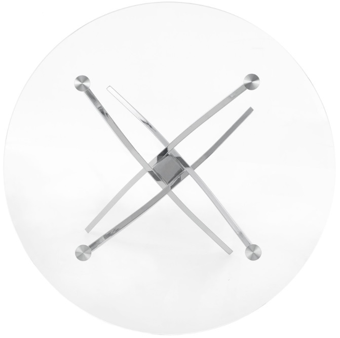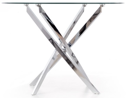 Snyggt matbord med en modern design. Underredet är tillverkat i kromad metall och toppskivan är av klarglas.
