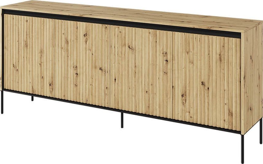 Skänk av laminerad spånskiva med LED-belysning och ben av metall. Levereras omonterad.