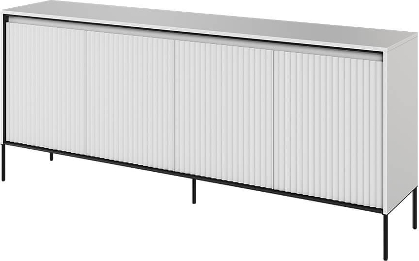 Skänk av laminerad spånskiva med LED-belysning och ben av metall. Levereras omonterad.