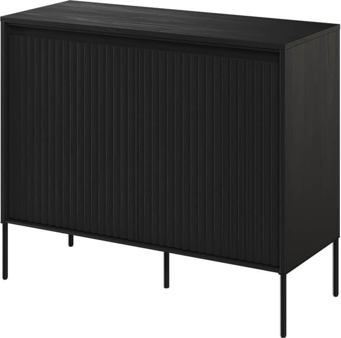 Skåp av laminerad spånskiva med LED-belysning och ben av metall. Levereras omonterad.