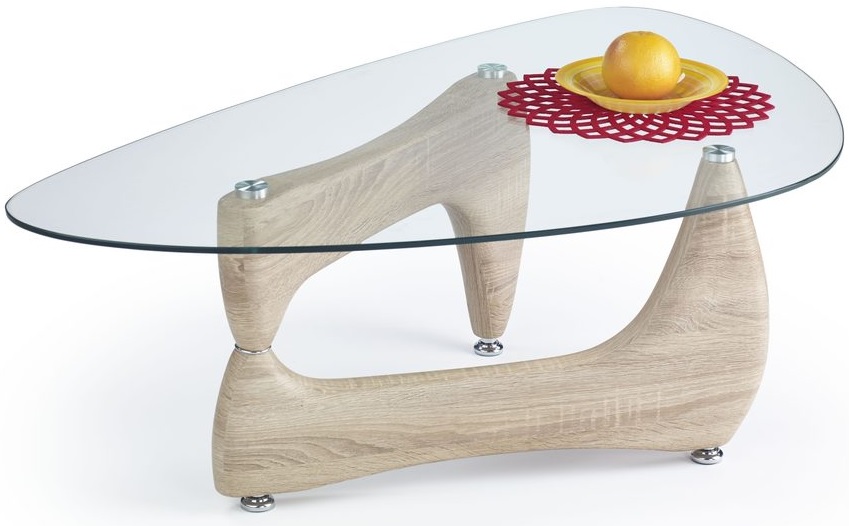 Härligt soffbord med en modern design. Bordsskivan är tillverkad i klarglas och underredet är i MFP (premium träskiva) med ett härligt ek laminat.