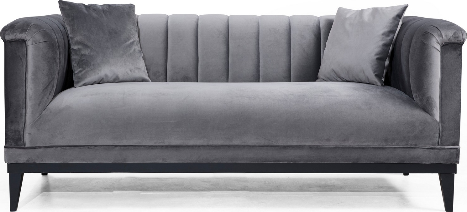 Soffa av trä med klädsel av polyester. 2 st prydnadskuddar ingår.