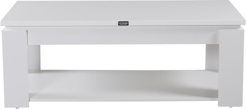 Soffbord i rektangulär form, med underhylla. Tillverkat av vit spånskiva. Stilrent, perfekt till vardagsrummet.