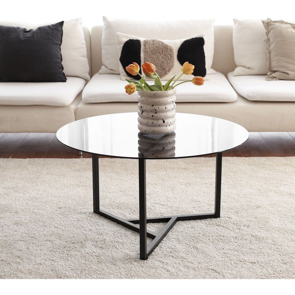 Soffbord av metall och tempererat glas.