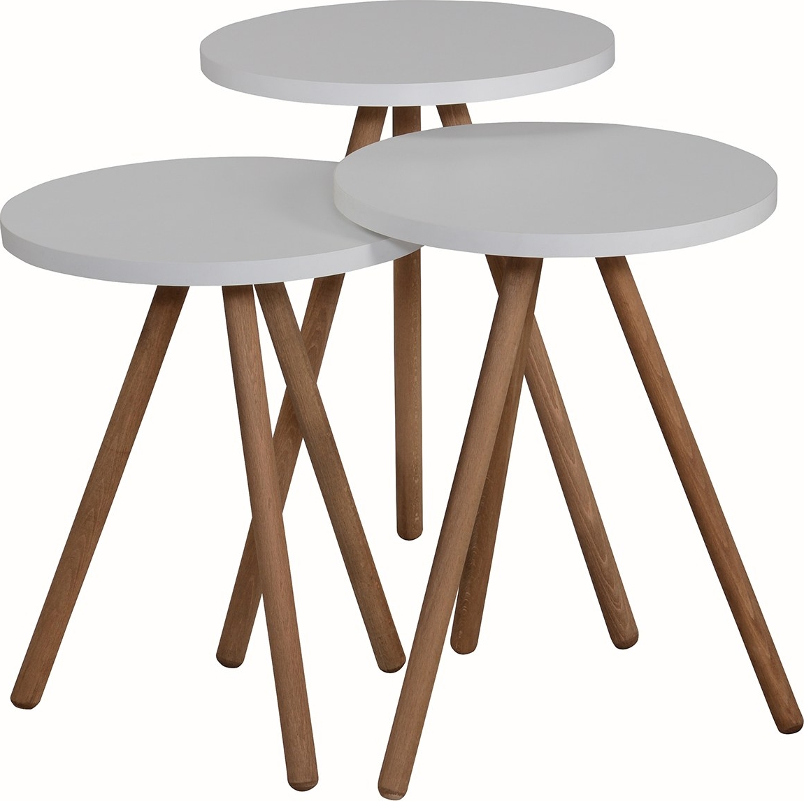 Satsbord av spånskiva med ben i massivt trä. 3 st.