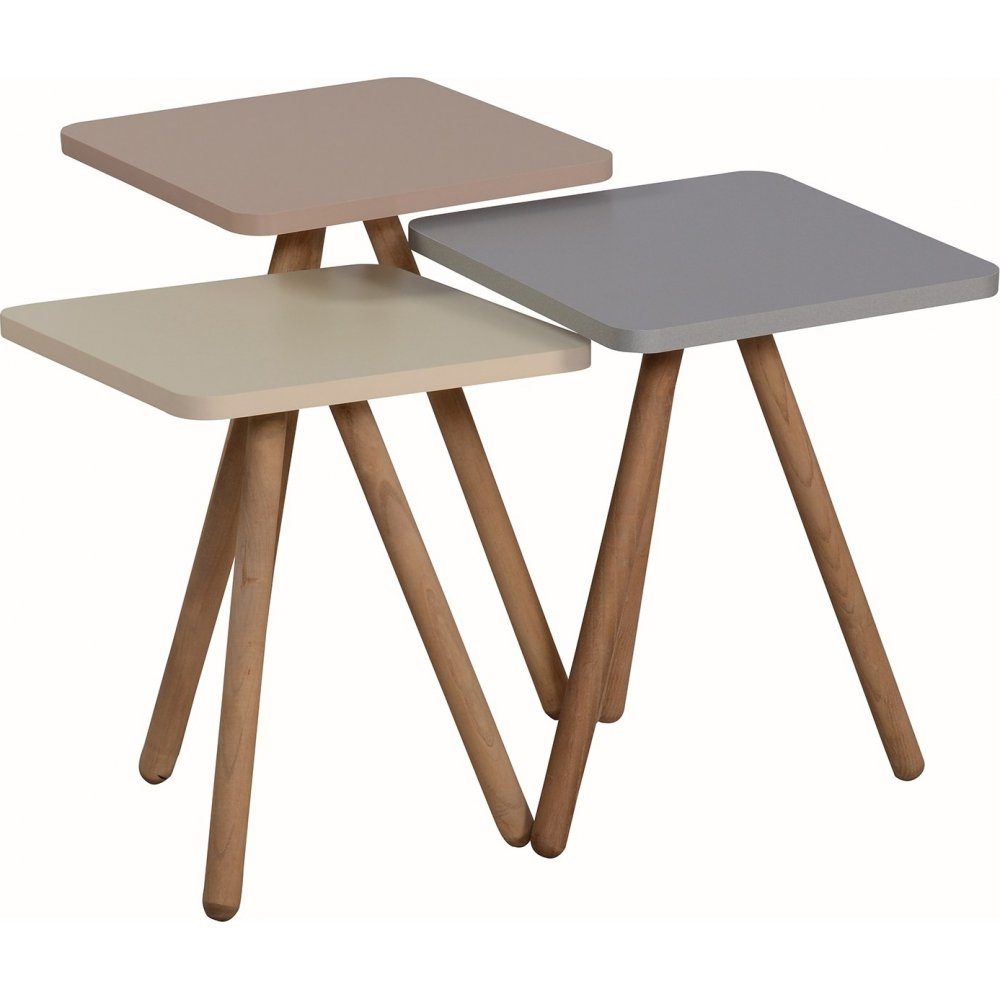 Satsbord av spånskiva med ben i massivt trä. 3 st.
