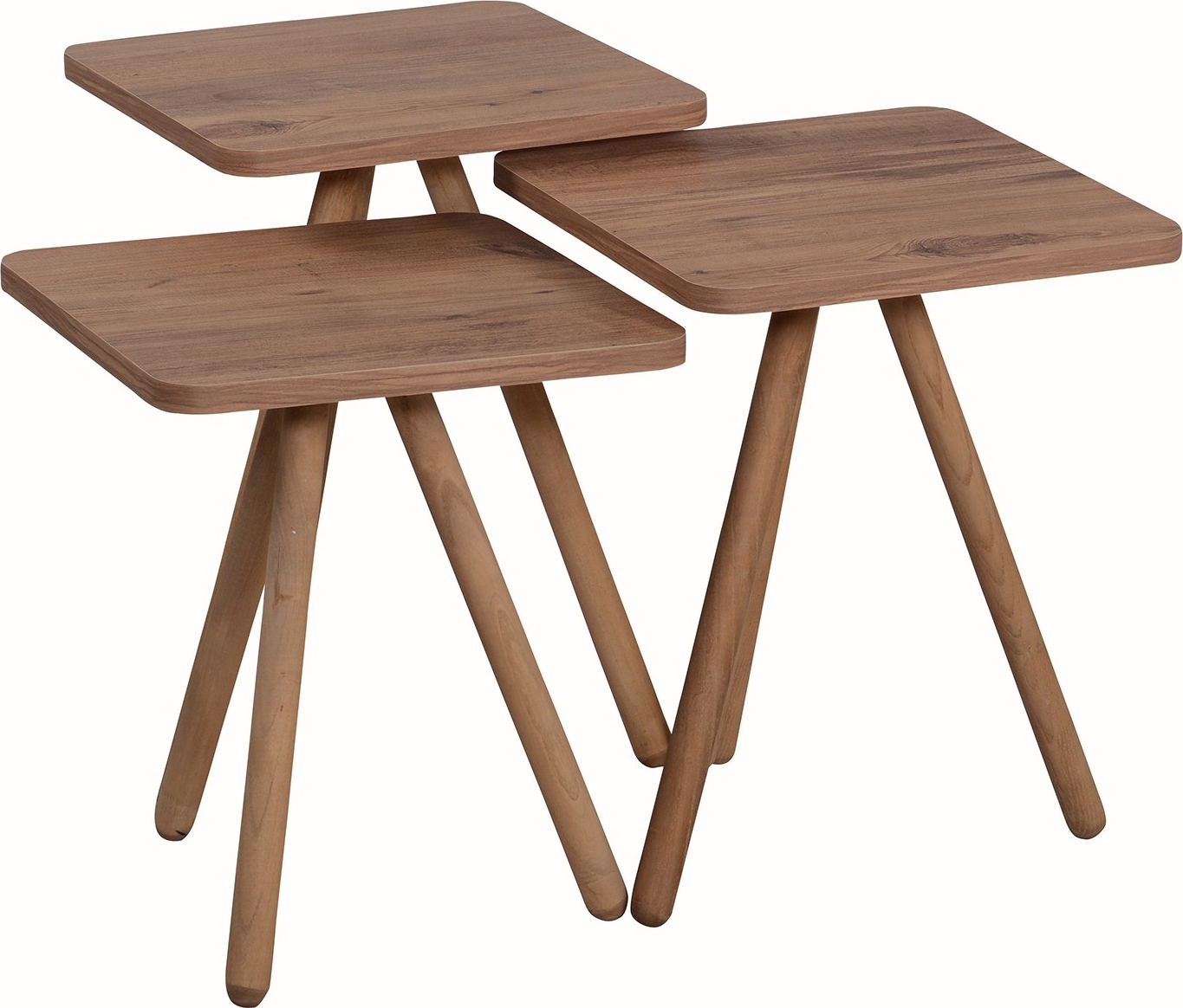 Satsbord av spånskiva med ben i massivt trä. 3 st.
