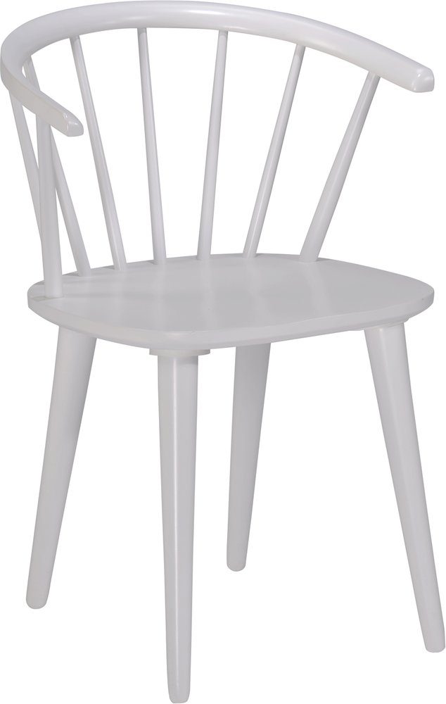 Klassisk pinnstol i ljusgrått massivt heveaträ.