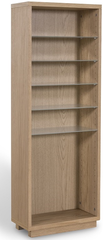 Trivas är en serie förvaringsmöbler i olika utförande och materialval! Denna bokhylla är i utförandet Ek-fanér. 6 st hyllplan i frostat glas. Glashyllorna placeras i valfri höjd och med valfritt mellanrum till nästa hylla.