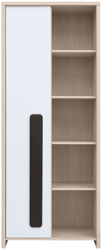 Garderob som erbjuder rikligt med förvaring. En öppen del och en del med dörr.