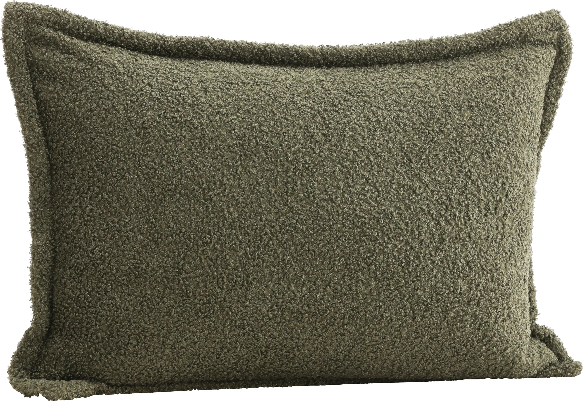 Kuddfodral i smäcker grön kulör, tillverkat med en mjuk teddy-känsla i polyestertyg. Fodralet har en diskret dragkedja på baksidan och en passpoalkant i samma tyg.