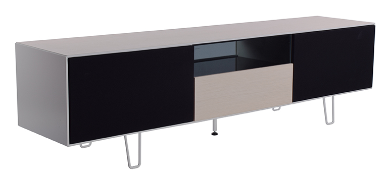 Leon mediabänk är en modern tv-möbel med tygklädda dörrar för att högtalare skall kunna placeras i möbeln utan att synas. Lådor med "soft-close" och "push-open"! MDF-stomme med ljus ek-fanèr! Möbeln kommer monterad, det som skall göras är att enkelt skruva fast benen.