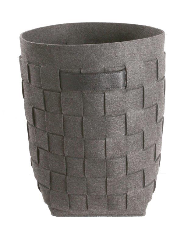Tvättkorg i mörkgrå filt med handtag utav PU.