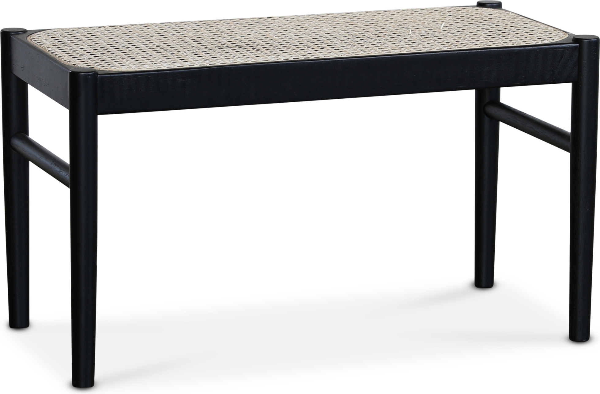 Twin sittbänk är perfekt för sovrummet eller hallen. Bänken är byggd i svartbetsat trä med sits av naturfärgad rotting.