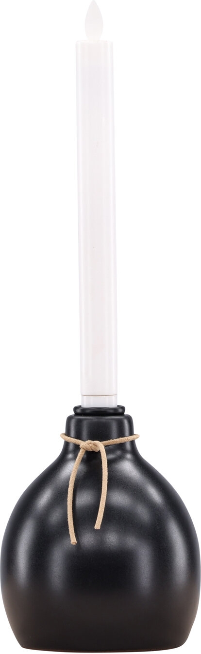 Lika smart som stilrent - Den här svarta ljusstaken med LED-ljus från serien Ulricehamn kommer att bli din bästa vän under det mörka halvåret! Denna fantastiska ljusstake förenar det bästa av både klassisk och modern design för att ge dig en inredningsdetalj som passar in överallt. Med sin stilrena svarta fot, bruna snöre och det vackra vita LED-ljuset i plast som efterliknar det klassiska kronljuset, blir detta ett utmärkt alternativ. Du behöver inte längre oroa dig för att hålla koll på ljusens lågor, för detta är det säkra alternativet som samtidigt ger dig en mysig atmosfär med samma känsla. Så sätt stämningen med en smart ljusstake. Vare sig du njuter av en mysig kväll i soffan eller arrangerar en middagsbjudning för vänner, kommer denna ljusstake att sätta stämningen på ett underbart sätt. Ulricehamn finns i olika höjder för att du ska kunna kombinera de tillsammans eller välja den höjd som passar bäst in hos just dig! Levereras monterad.