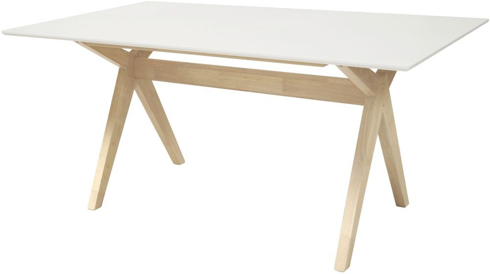 Nätt matbord för den mindre matplatsen. Bordsskiva i vitlackad MDF med ett massivt kryssbensunderrede i vitpigmenterad vaxlackad hevea.