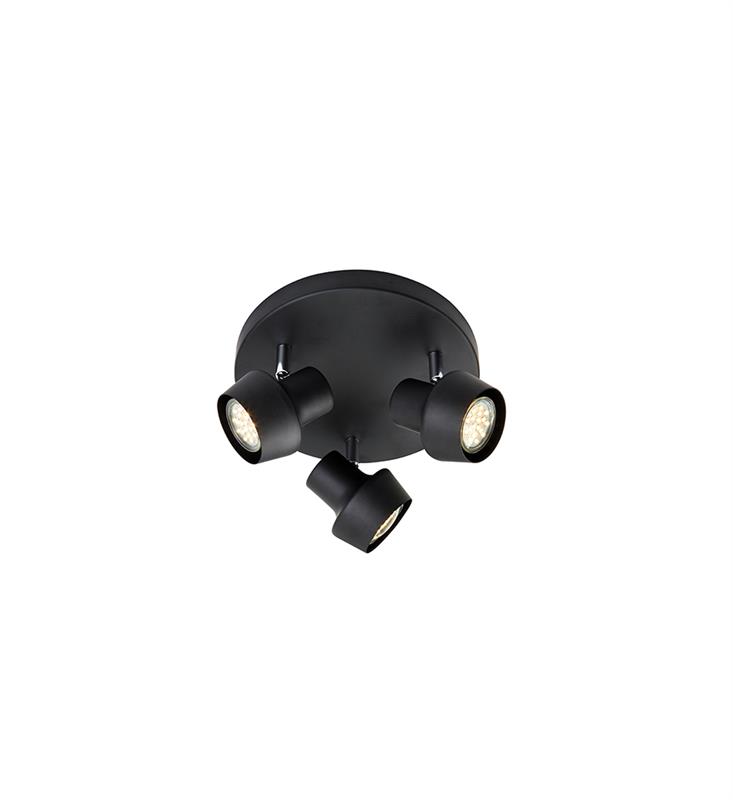 Urn snygga taklampa. Tillverkad i svartmålad metall med ställbara lamphuvuden. GU10 lamphållare för max 35W halogen eller motsvarande i LED. Jordad anslutning. Montering med takbygel. Lampan passar perfekt in på flera platser i hushållet.