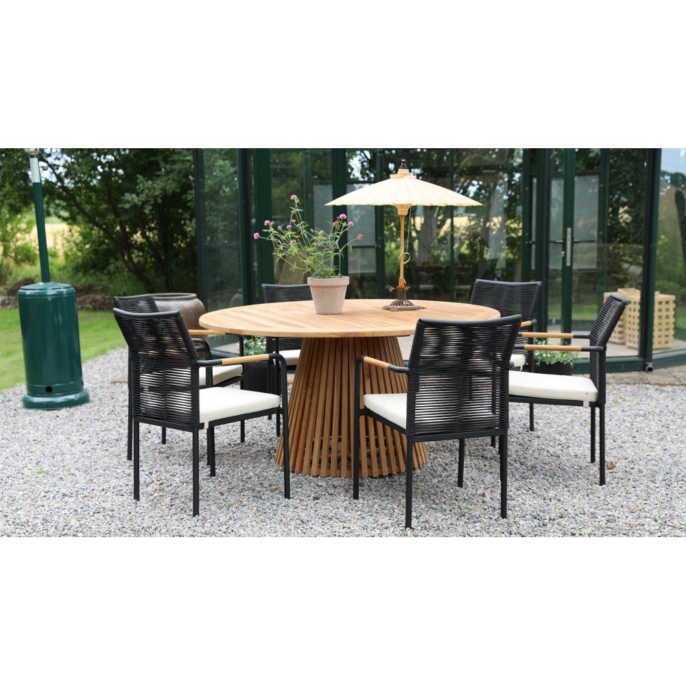 Utegrupp; Bord Ø150 cm med 6 st stolar - Teak/Svart