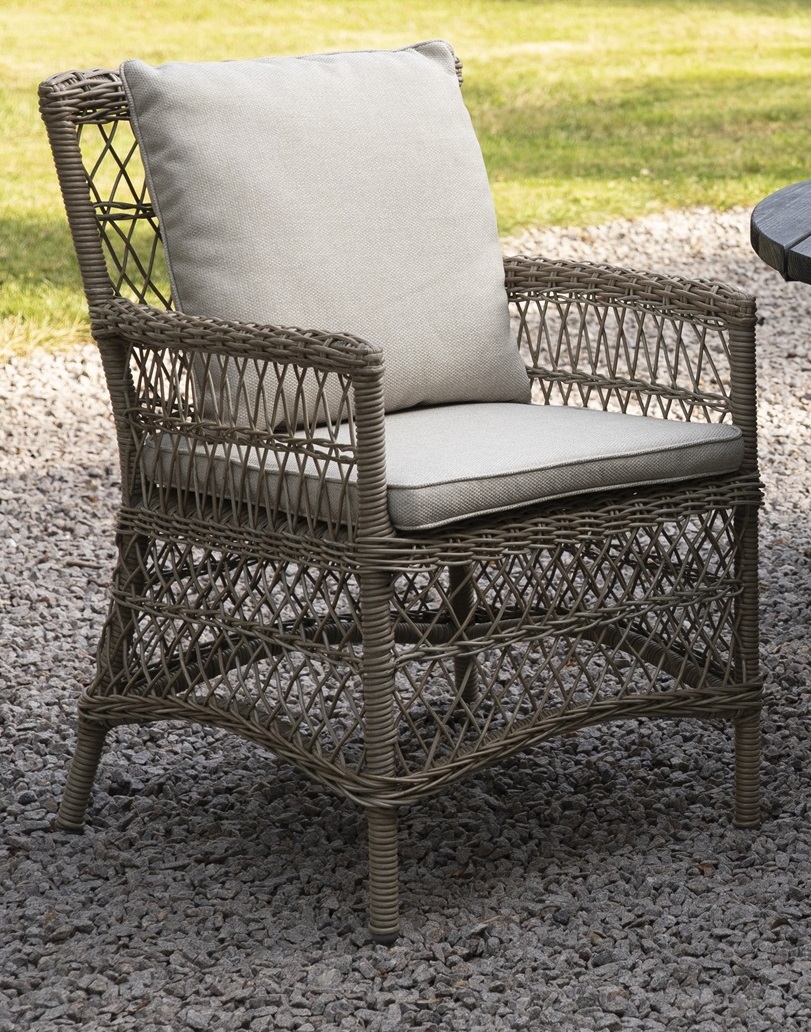 Utegrupp Provence: Scottsdale runt brunt matbord Ø112 cm inklusive 4 st Provence karmstolar i natrufärgad konstrotting