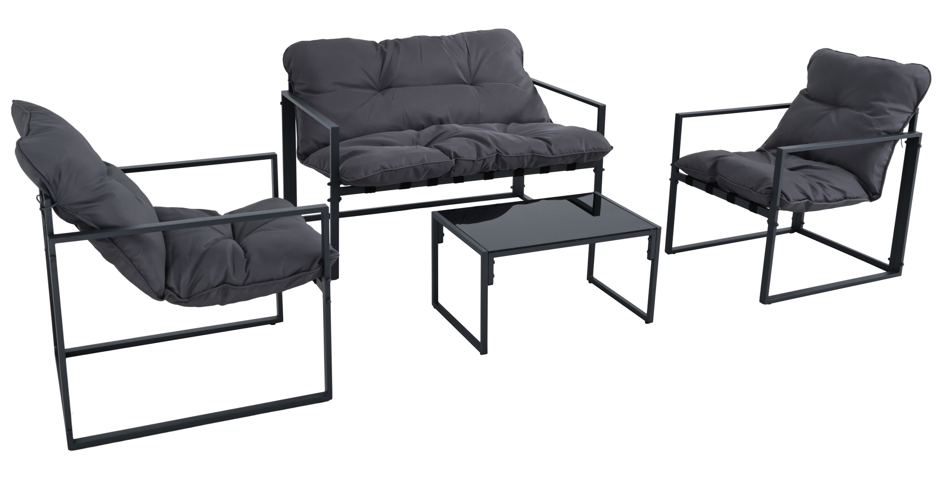 Utegrupp; soffa + 2 st fåtöljer + soffbord Svart/grå - Kreta