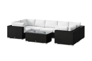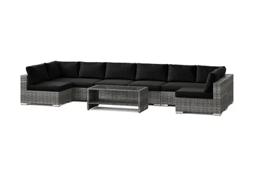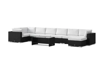 Bahamas U-formad utomhus loungegrupp 8-sits med vändbar divan och bord med hylla, Svart