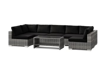Bahamas Divanmodul - Loungebord utomhus 75x75 cm till soffgrupp i konstrotting med glasskiva, Grå / Svart dyna